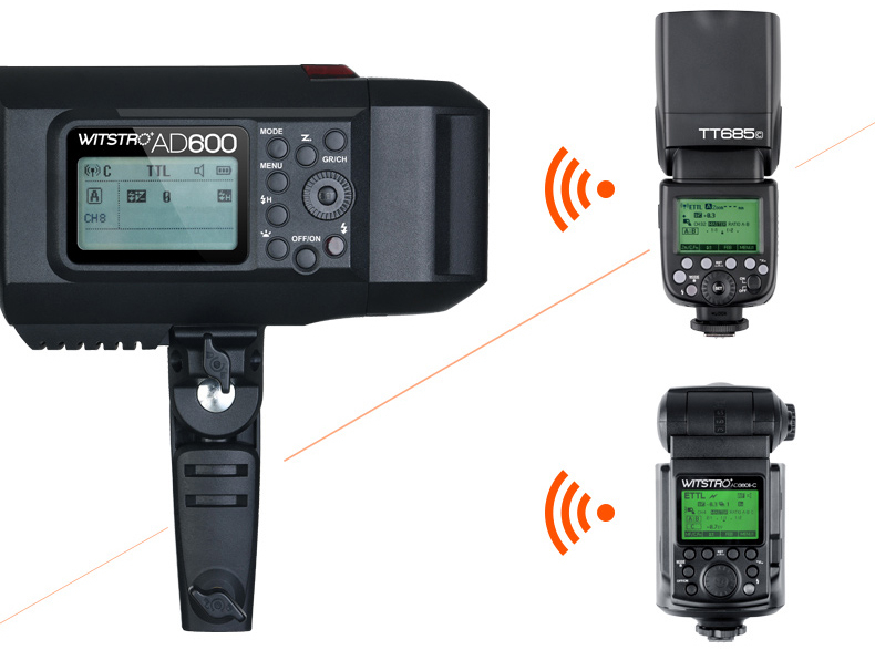 Многофункциональная TTL вспышка Универсальная аккумуляторная вспышка AD600/AD600B с поддержкой TTL – это мощная портативная вспышка с профессиональным литиевым аккумулятором. Встроенная система беспроводной радиосинхронизации 2.4G Godox X поддерживает TTL-протоколы Canon E-TTL II, Nikon i-TTL и SONY с отличной совместимостью. Как AD600 (с байонетом Godox), так и AD600B (с байонетом Bowens) совместимы с множеством насадок и аксессуаров. Съемка становится проще со вспышками AD600/AD600B. Легко достичь корректной экспозиции даже при работе в среде с быстро меняющимся освещением. Оптическая и беспроводная радиосинхронизация 2,4G обеспечивает стабильную производительность. При использовании встроенной системы беспроводной радиосинхронизации 2.4G Godox X AD600/AD600B совместимы с TTL-протоколами автоматической установки мощности Canon E-TTL II, Nikon i-TTL, SONY и т.п. Оптическая синхронизация Беспроводная радиосинхронизация 2.4G В качестве ведомой вспышки AD600/AD600B могут использоваться в сочетании с накамерными TTL вспышками Godox, аккумуляторными TTL вспышками, студийными TTL вспышками и т.п. Беспроводное дистанционное управление и синхронизация Используйте систему беспроводной радиосинхронизации 2.4G Godox X для осуществления TTL управления или используйте беспроводной синхронизатор Godox TTL X1 в качестве пульта дистанционного управления функциями TTL, регулировкой мощности, звуковой сигнализацией и поджига вспышки. Гнездо для синхрокабеля 3,5мм и разъем для беспроводного управления позволяют осуществлять различные методы синхронизации. Высокая мощность и широкий функционал Вспышки Ad600B / AD600BM предлагают 600Дж энергии, что позволяет достичь ведущего числа GN-87 (m ISO 100, со стандартным рефлектором AD-R7). Стабильная цветовая температура 5600±200К во всем диапазоне доступной энергии. 25 шагов регулировки мощности (от 1/1 до 1/256) обеспечивают более качественное создание световых эффектов. Полная поддержка автоматической работы в режиме TTL, экспокоррекция вспышки, высокоскоростная синхронизация HSS 1/8000с, синхронизация по первой шторке, по второй шторке, съемка в режиме ручной установки мощности, мультивспышки, индивидуальные пользовательские настройки и т.п. Удобная в использовании импульсная головка вспышки Для использования вспышки с небывалым удобством рекомендуется приобрести дополнительно переносную голову H600. При подключении двух вспышек AD600 к переносной голове H1200 (приобретается отдельно) можно получить производительность вспышки 1200Вт. Сумка для переноски PB-600 имеет открывающееся окошко, позволяя легко настраивать параметры вспышки и одновременно эффективно защищать от дождя и загрязнений. Продуманные детали и отличное качество Светодиодная пилотная лампа 100Вт имеет трехступенчатую регулировку яркости. Большой и четкий матричный ЖК дисплей обеспечивает удобную настройку функций. Ручка помогает легко отрегулировать угол наклона вспышки. Возможность обновления прошивки через порт USB помогает идти в ногу с новейшими технологиями. Широкий ассортимент аксессуаров AD600 имеет байонет Godox для установки серии аксессуаров, таких как различные софтбоксы, портретные тарелки, насадки и т.п. AD600B снабжена байонетом Bowens для установки различных аксессуаров с максимальной совместимостью